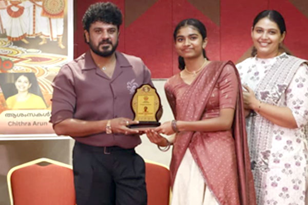 Education Awards to Abhinand Ranjith, Aanerin Mariyam Biju, and Niranjana Pradeep.