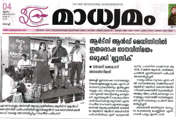 Musical performances by Rajesh Vaduthala, Pradeep, Shaju Jose, Binu Anand, Vipin Xavier, Prem C.P., Rafeeq and many others, backed by talented instrumentalists.