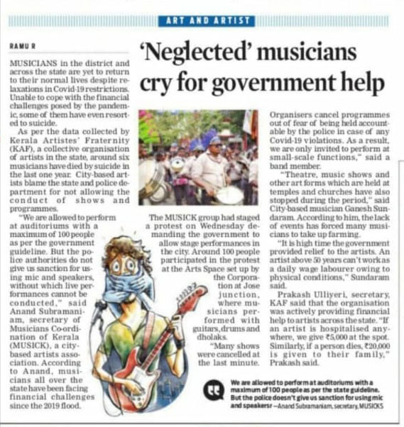 Musick Association is a leading organization in Kerala working for the welfare and upliftment of music artists.
